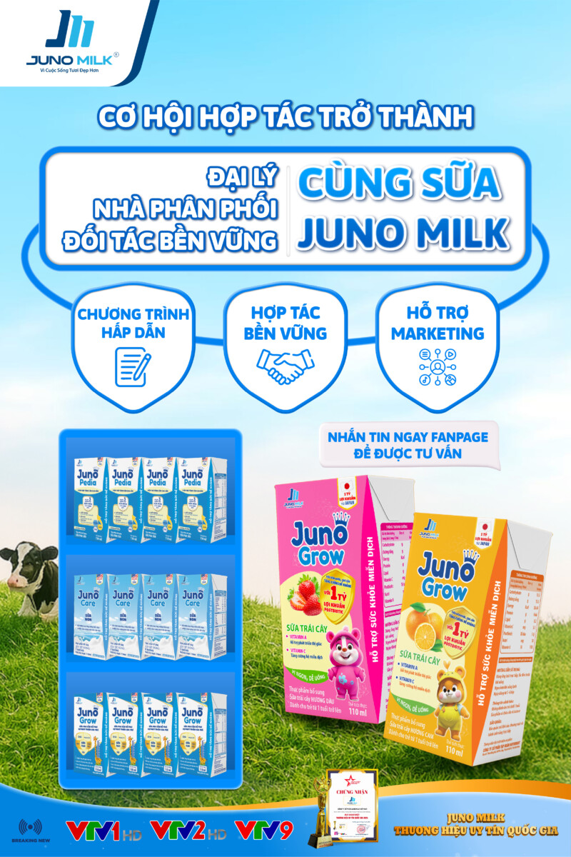 Juno Milk xây dựng hệ thống nhà phân phối, đại lý, cửa hàng trên toàn quốc. Mục tiêu đến năm 2027 có 2.500 cửa hàng và hệ thống đại lý, nhà phân phối rộng khắp 63 tỉnh thành cả nước.